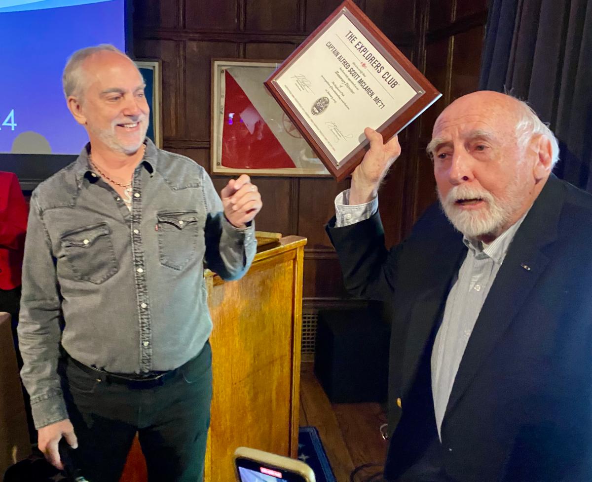 Capt. Fred McLaren celebrates designation as an Explorers Club Honorary Director during the Club’s annual meeting in April 2025.